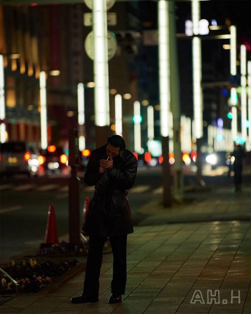 In 2022, he starred in the indie film JOINT, and Hasegawa styled him again—this time in leather coats, moody stares, and streetside shots that evoke noir cinema.