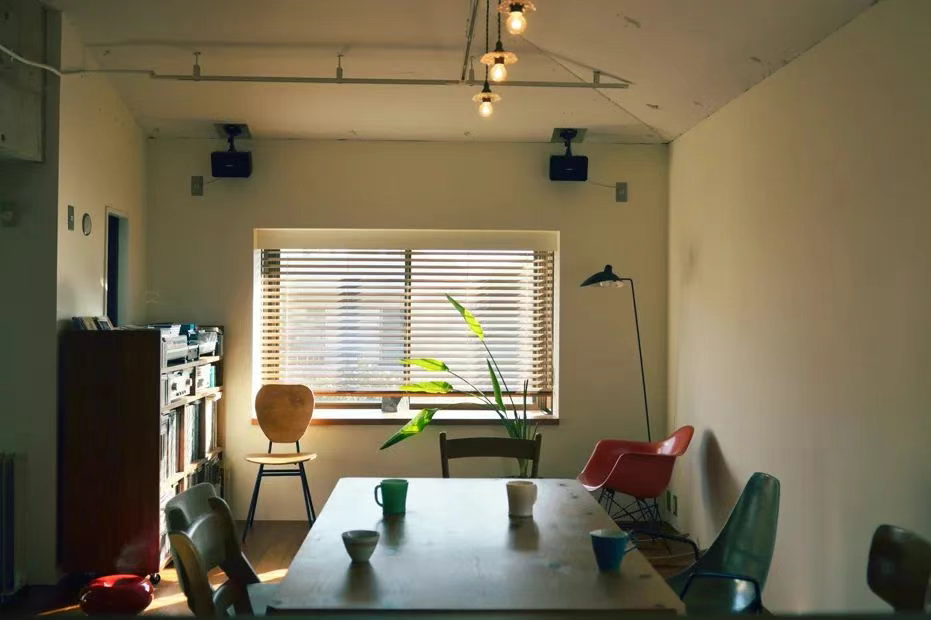 From an Eames chair bought in Shimokitazawa to a 1950s bar stool from the U.S., every piece has meaning. His home, filled with secondhand records, books, and decor, reflects a life led by curiosity and personal taste—not trends.